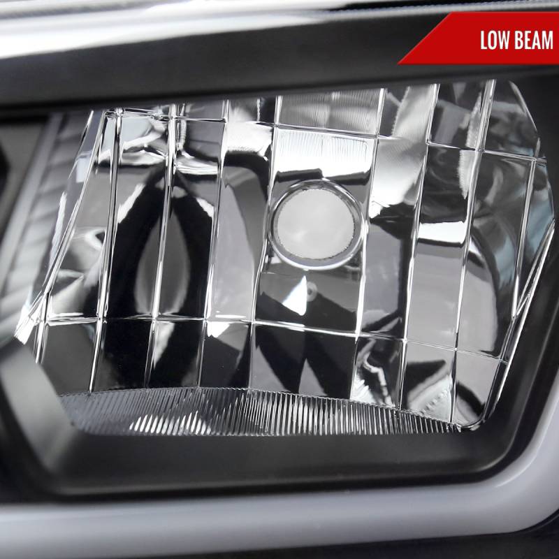 - Includes (1) pair of driver and passenger side factory headlights in matte black housing with clear lens