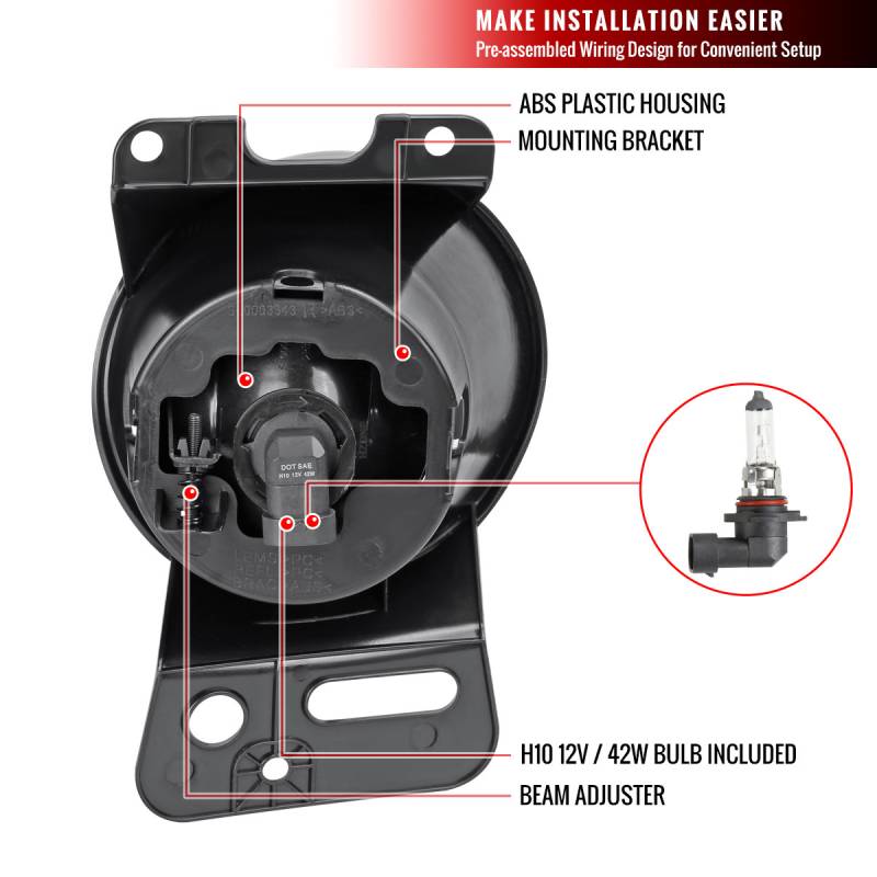 If your vehicle did not come with fog lights or the originals are damaged, replace them with these quality Spec-D Tuning fog lights. Whether you're driving in the fog or heavy rain, fog lights are mounted low on the vehicle and illuminate the road directly in front of the vehicle to reduce glare, creating better road visibility. With any fog lights, not only visibility in adverse weather conditions is restored, but also your aesthetic appearance of your vehicle.