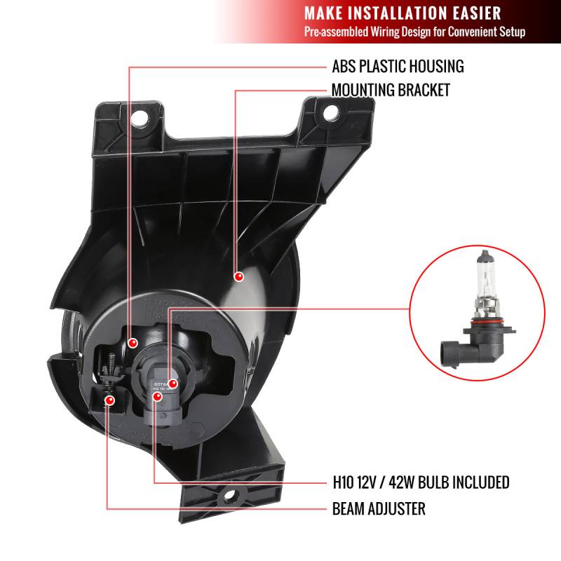 If your vehicle did not come with fog lights or the originals are damaged, replace them with these quality Spec-D Tuning fog lights. Whether you're driving in the fog or heavy rain, fog lights are mounted low on the vehicle and illuminate the road directly in front of the vehicle to reduce glare, creating better road visibility. With any fog lights, not only visibility in adverse weather conditions is restored, but also your aesthetic appearance of your vehicle.