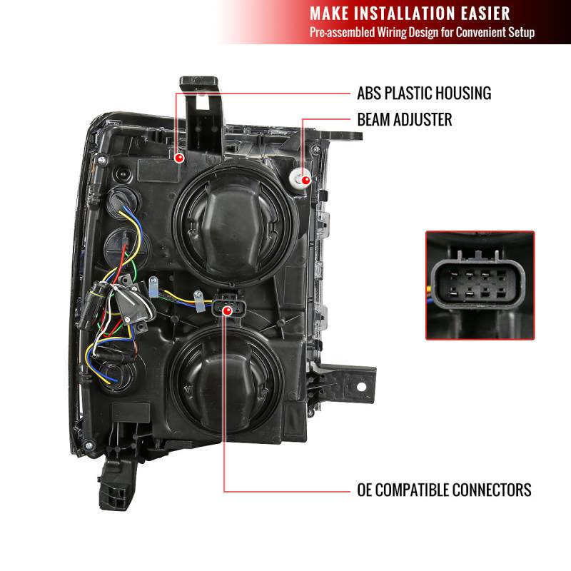 2014-2015 Chevrolet Silverado 1500 LED Bar Factory Style Headlights (Matte Black Housing/Clear Lens)