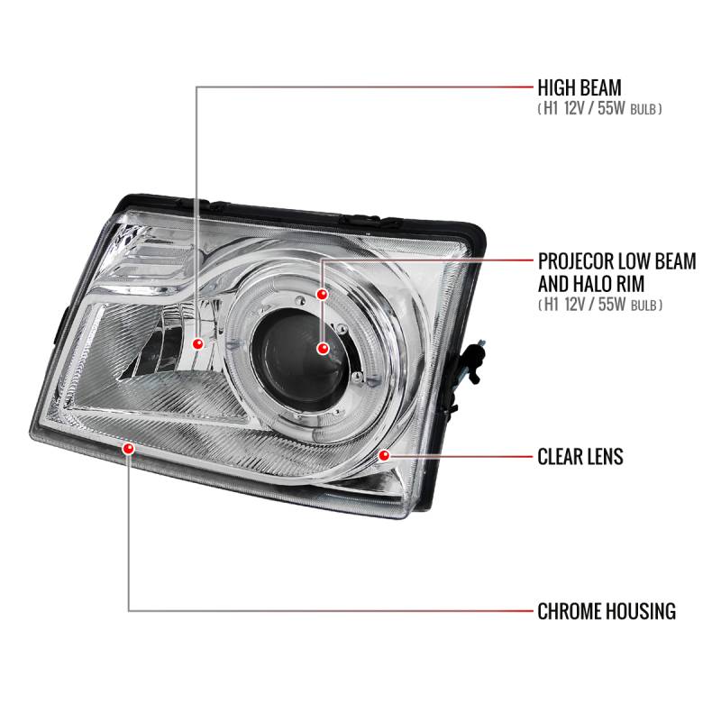 1998-2000 Ford Ranger Halo Projector Headlights (Chrome Housing/Clear Lens)