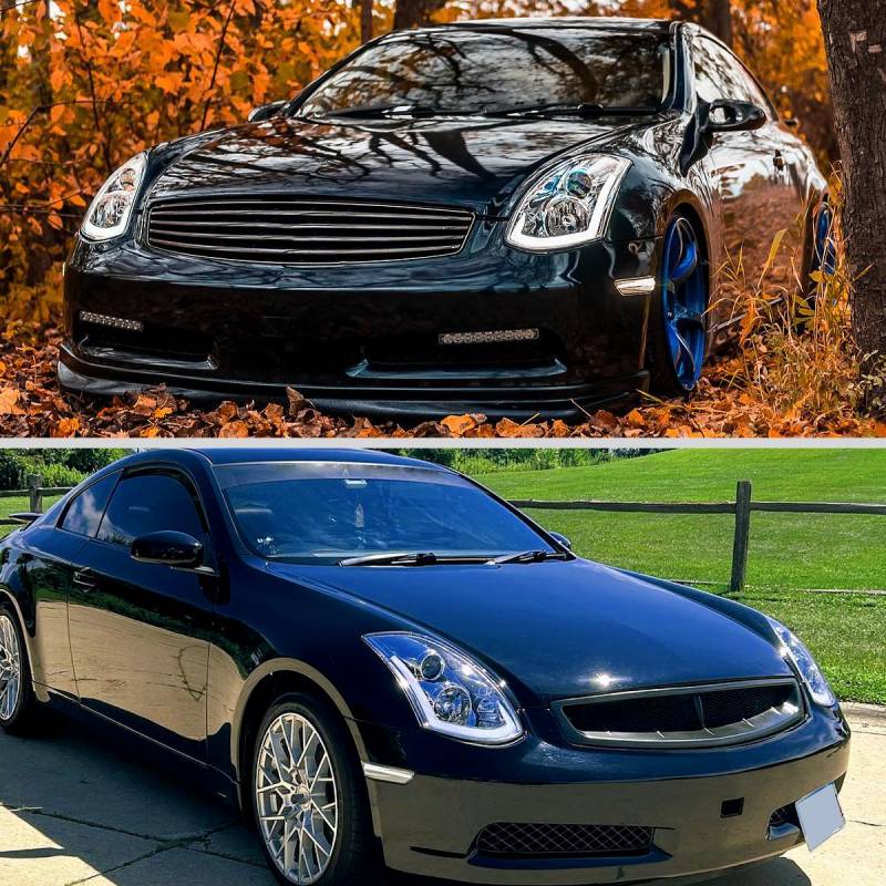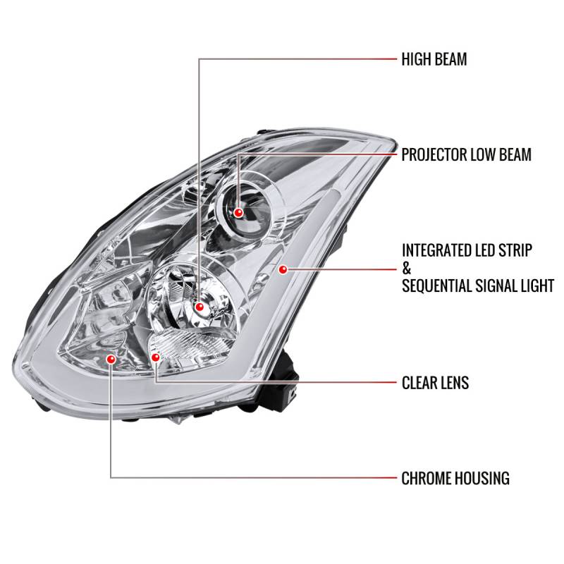 2003-2007 Infiniti G35 Coupe LED Bar Projector Headlights w/ Sequential Turn Signals (Chrome Housing/Clear Lens)