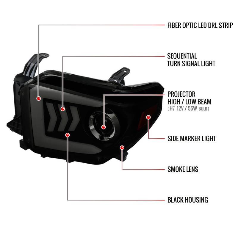Spec-D 2014-2021 Toyota Tundra LED C-Bar Projector Headlights w/ Sequential Arrow Turn Signals (Black Housing/Smoke Lens)