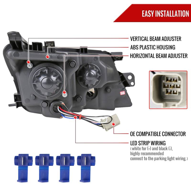 - All wiring for headlights are pre-assembled for essential plug and play application