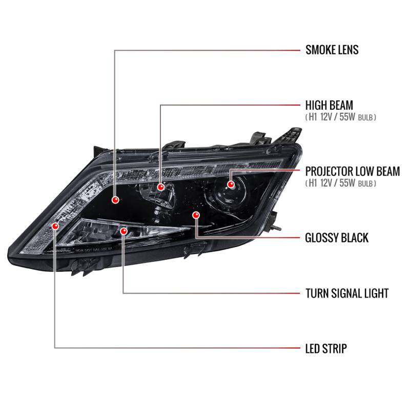 2010-2012 Ford Fusion Projector Headlights w/ LED Light Strip (Glossy Black Housing/Smoke Lens)