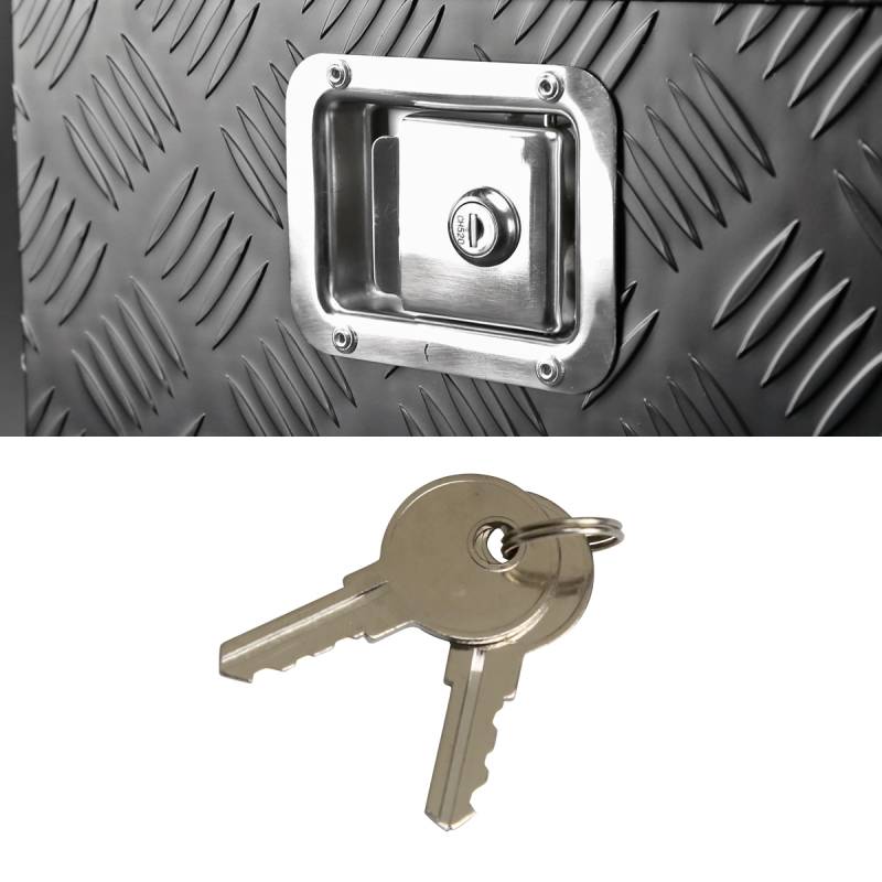 - Includes one tool box, anti-theft lock, and two keys