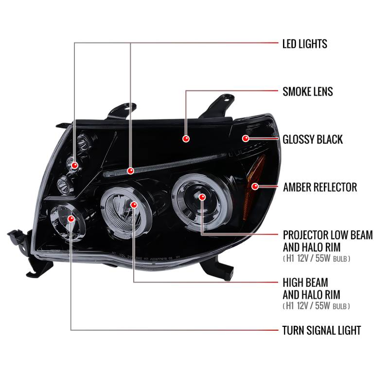 2005-2011 Toyota Tacoma Dual Halo Projector Headlights (Glossy Black Housing/Smoke Lens)