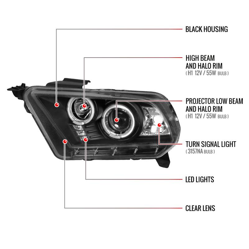 2010-2014 Ford Mustang with Halogen version headlights models only