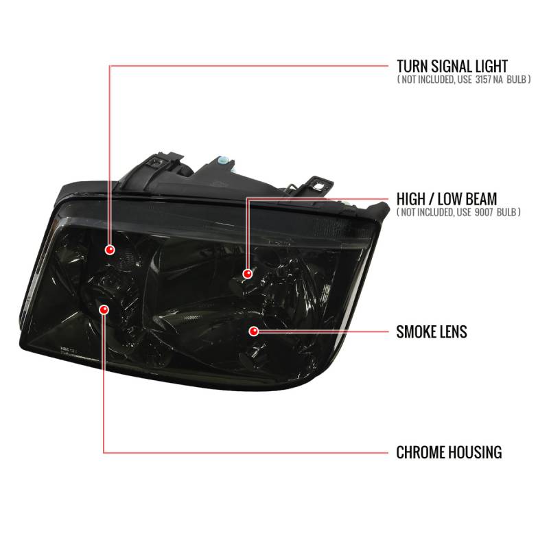 1999-2005 Volkswagen Jetta/Bora Mk4 V3 Factory Style Headlights (Chrome Housing/Smoke Lens)