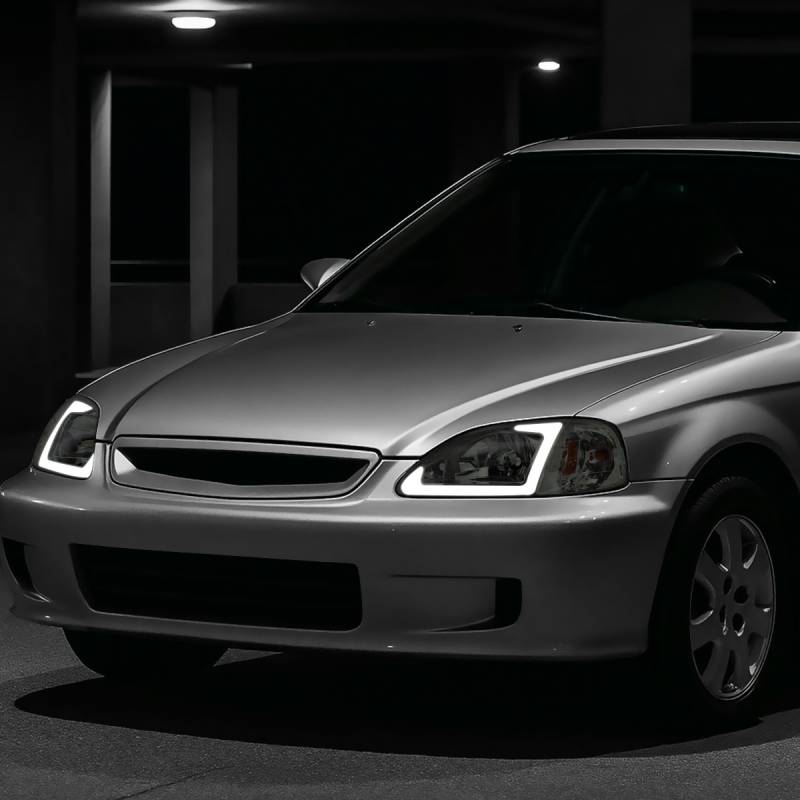 1999-2000 Honda Civic Coupe/Sedan LED Bar Factory Style Headlights (Chrome Housing/Smoke Lens)