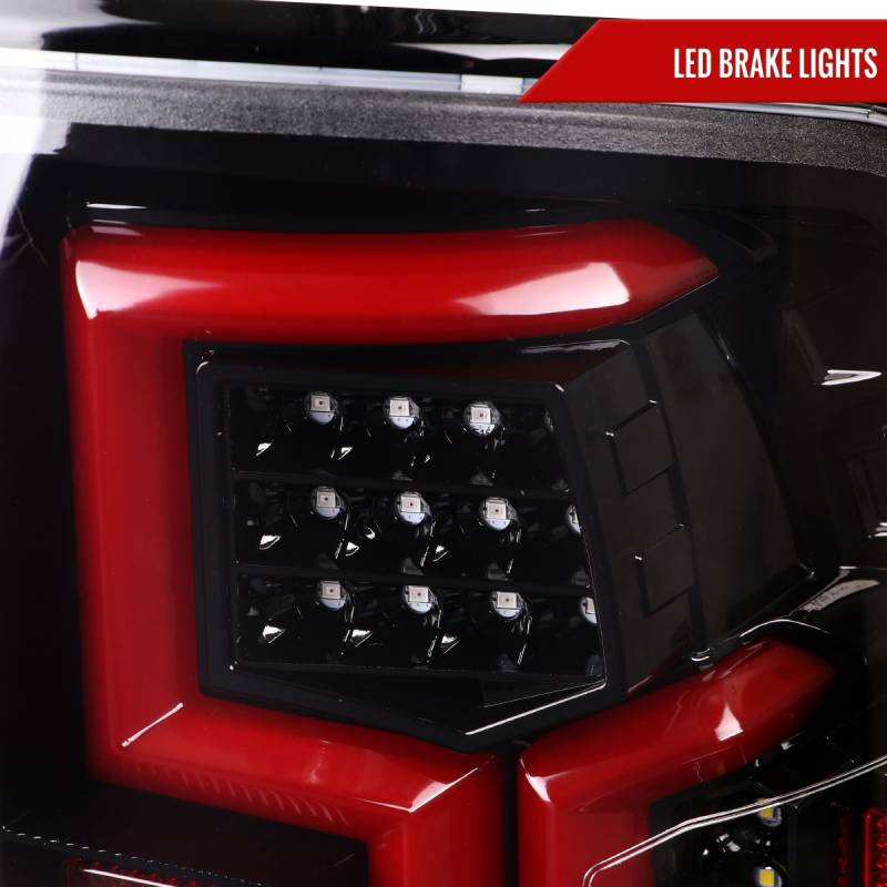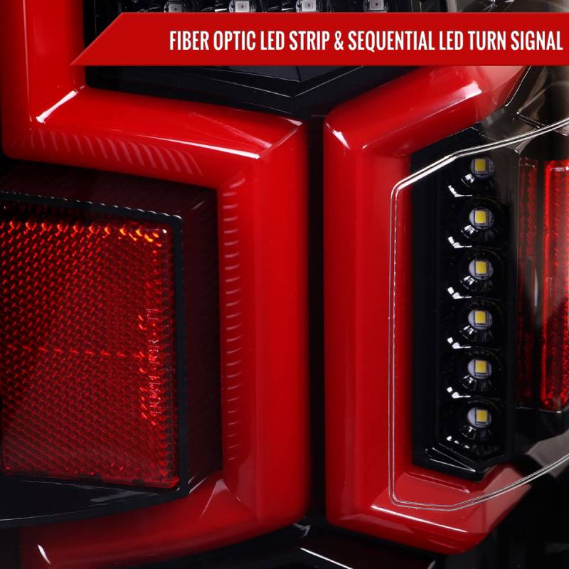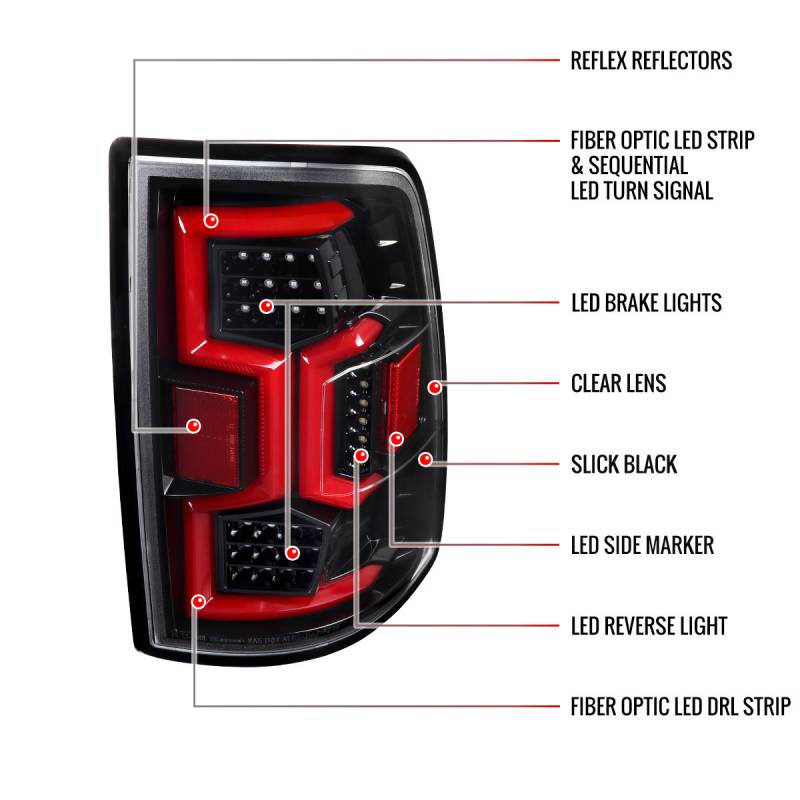 - Comes with (1) set of sequential LED turn signal tail lights in jet black housing with clear lens