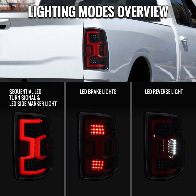 Spec-D 2019-2022 Dodge RAM 2500/3500 LED Sequential Signal Tail Lights (Jet Black Housing/Clear Lens)