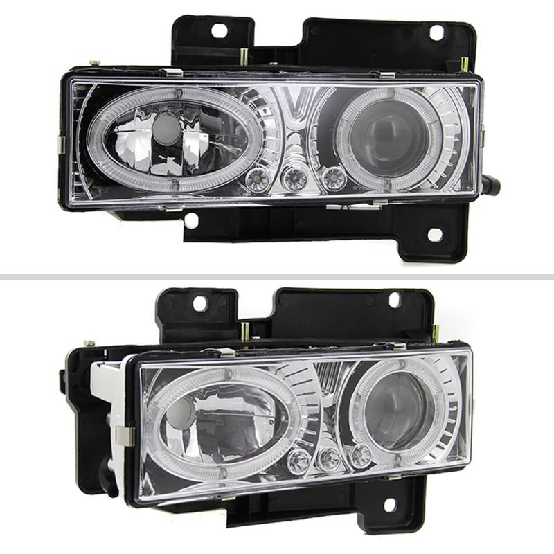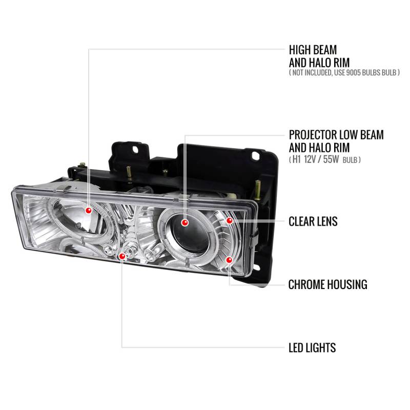 1988-1999 Chevrolet C/K C10/Blazer/Tahoe/Yukon/Sierra/Silverado Dual Halo Projector Headlights (Chrome Housing/Clear Lens)