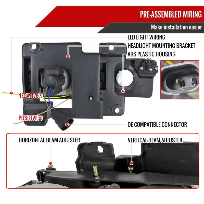 - Bulbs not included for high beam - Please use stock bulbs, sockets or wiring for installation