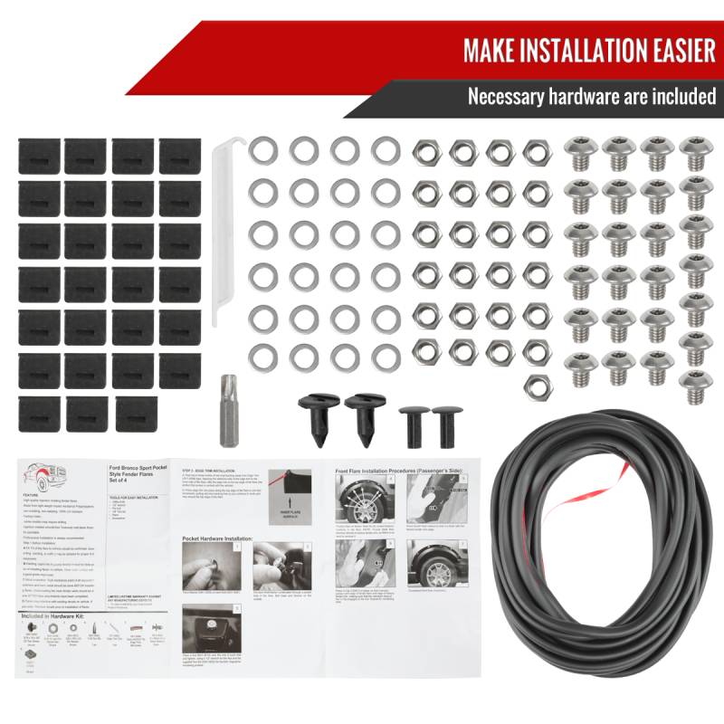 - Comes with 4 pieces of pocket rivet style fender flares (2x front and 2x rear)