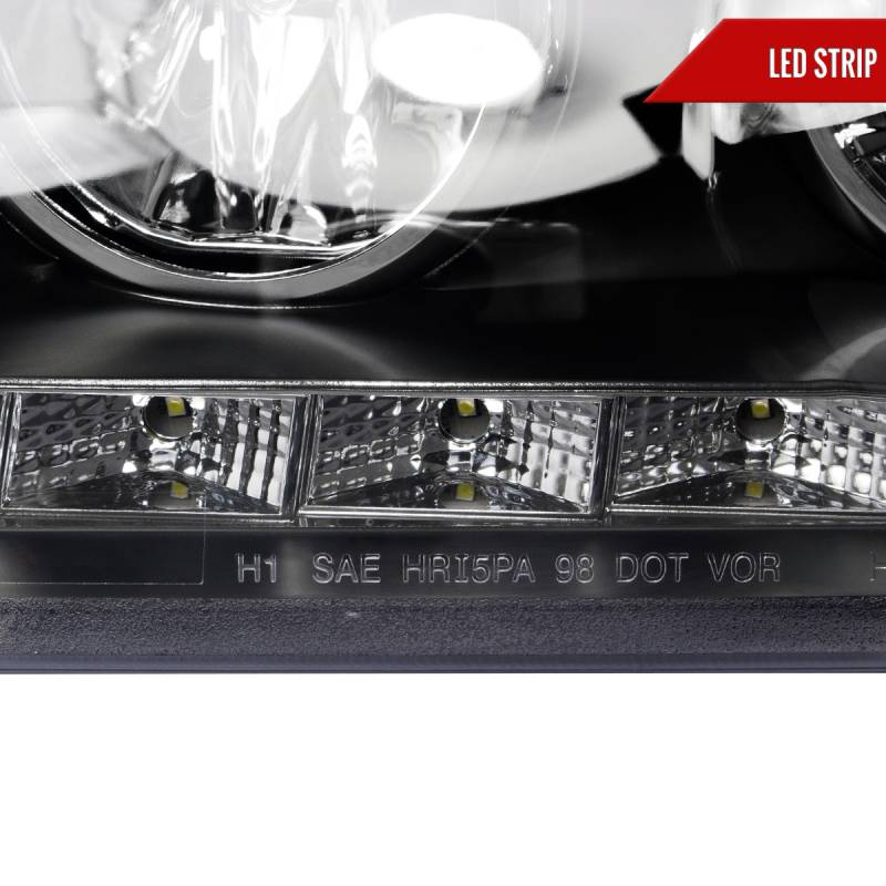 - Matte black housing, clear lens projector headlights with LED light strip