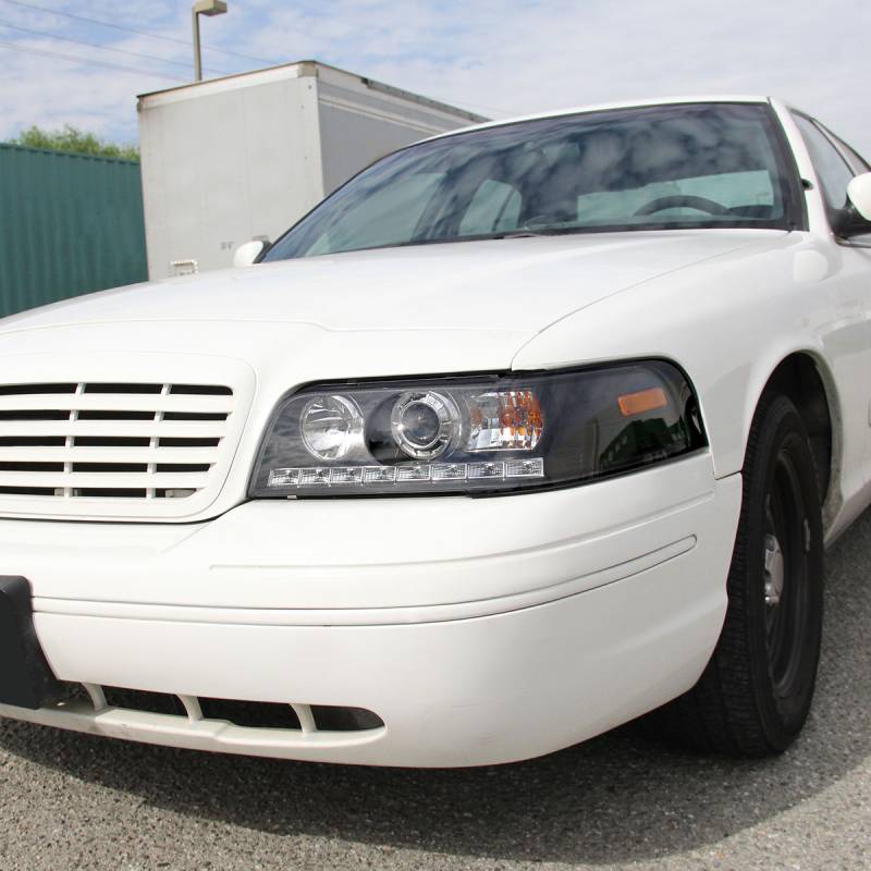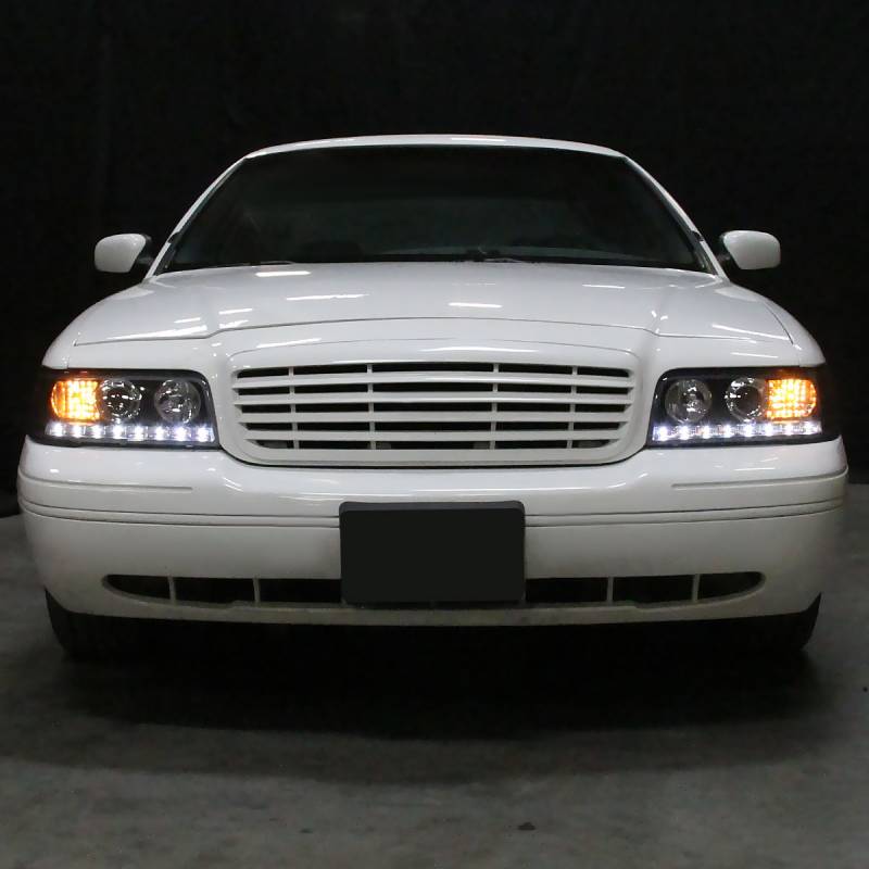 1998-2011 Ford Crown Victoria Projector Headlights w/ LED Light Strip (Matte Black Housing/Clear Lens)