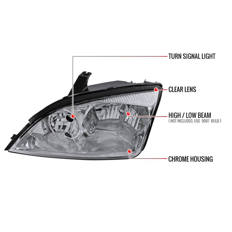 2005-2007 Ford Focus Factory Style Headlights (Chrome Housing/Clear Lens)