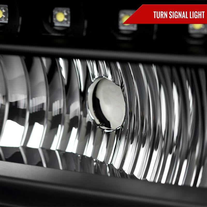 1999-2004 Ford F-250/F-350/F-450/F-550/Excursion Crystal Headlights w/ SMD LED Light Strip (Matte Black Housing/Clear Lens)