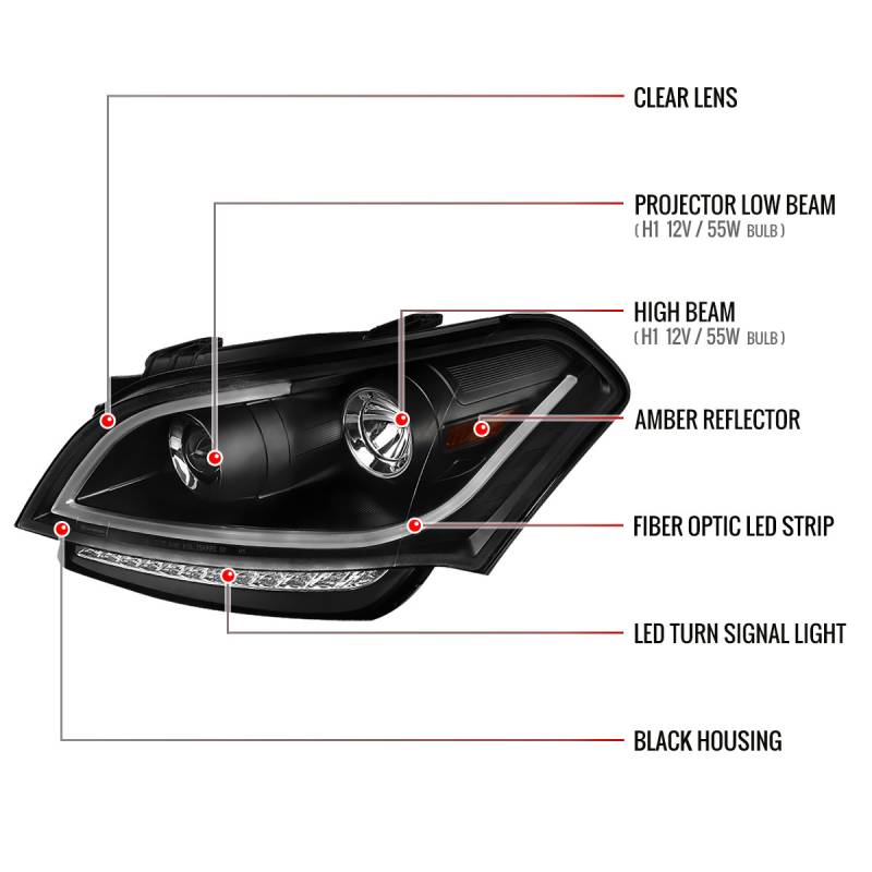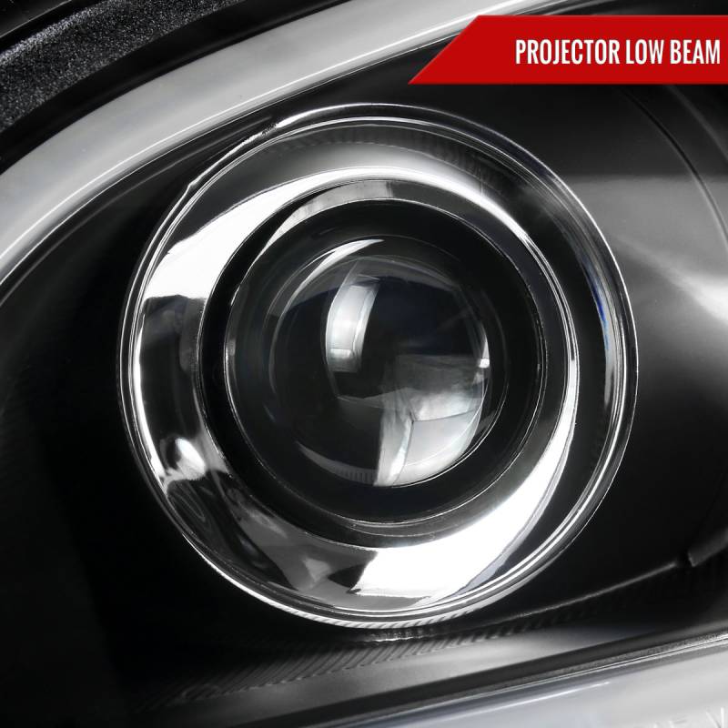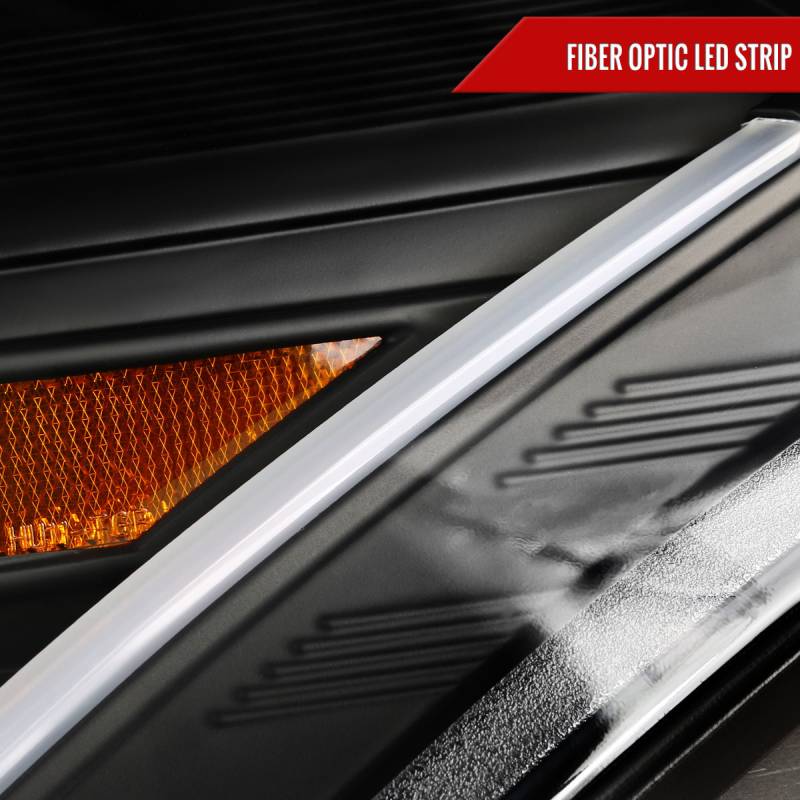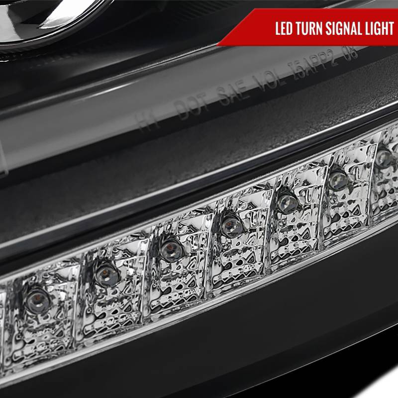 - Matte black housing, clear lens projector headlights with LED light bar & LED turn signal lights
