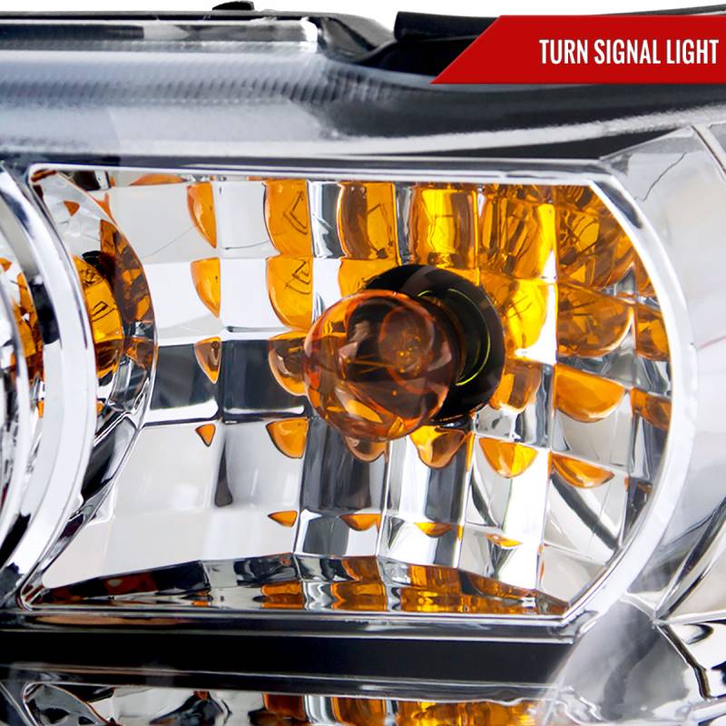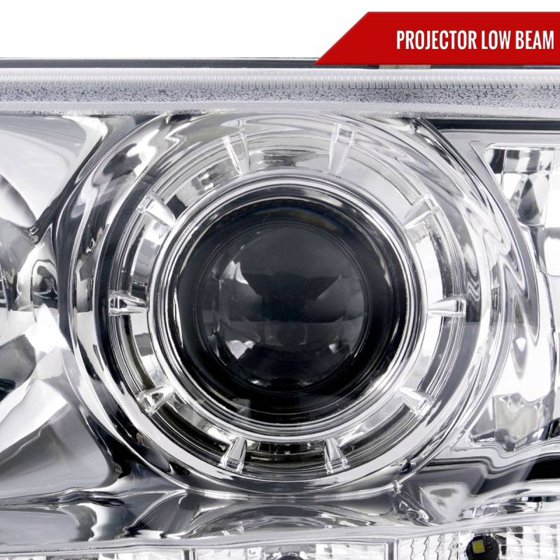 - Chrome housing, clear lens projector headlights with LED light strip