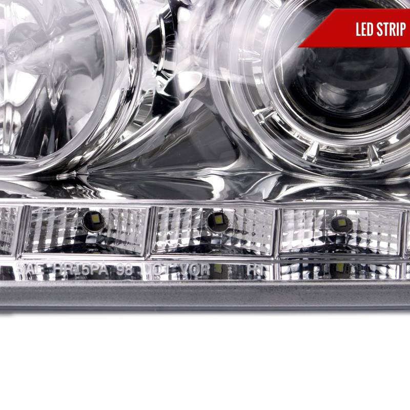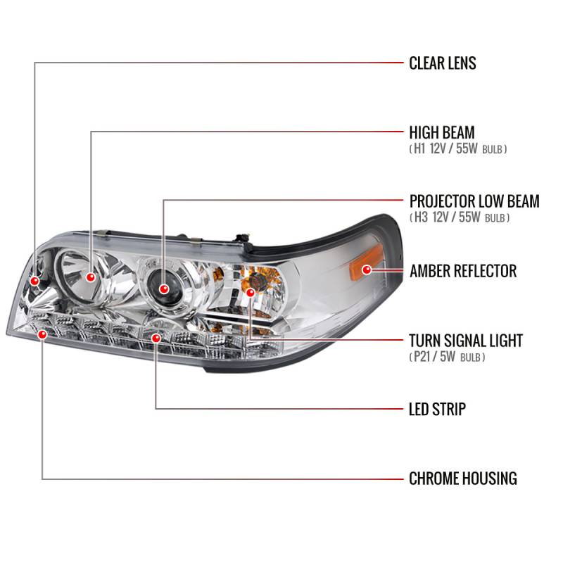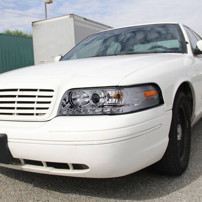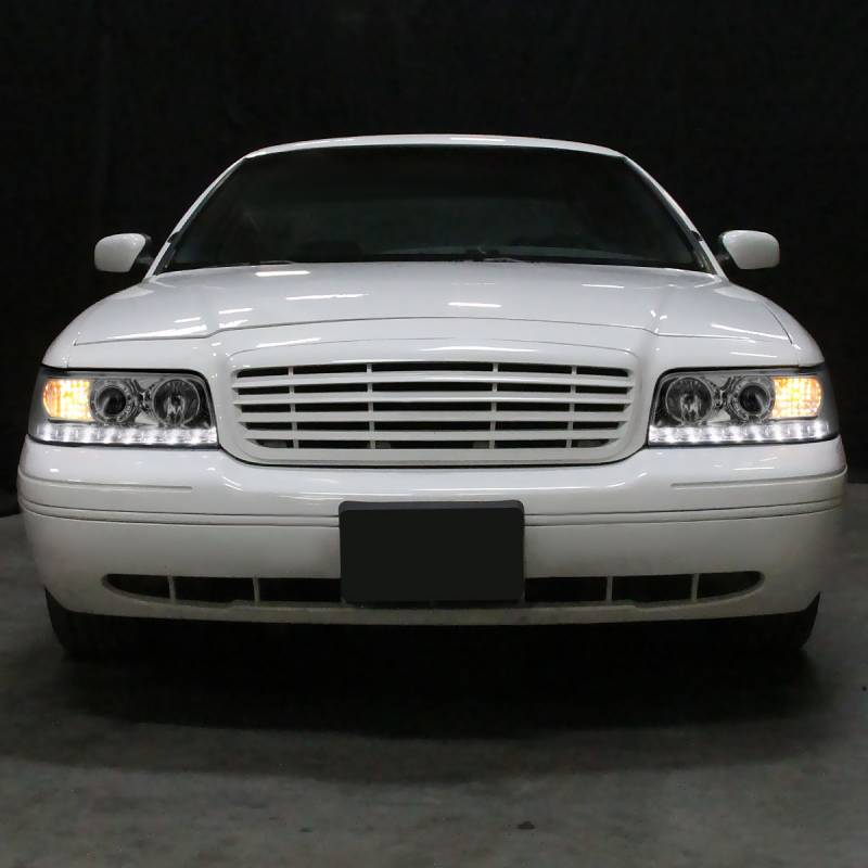1998-2011 Ford Crown Victoria Projector Headlights w/ LED Light Strip (Chrome Housing/Clear Lens)