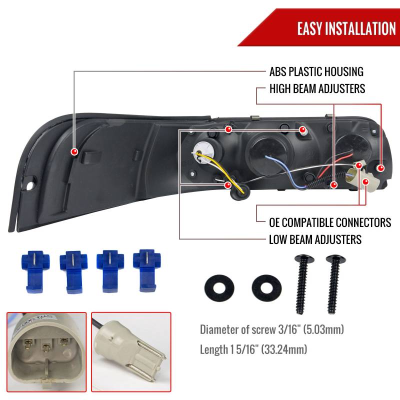 - H1 high beam, H3 low beam, & P21/5W 12V turn signal bulbs included