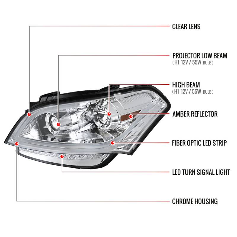 2010-2011 Kia Soul Projector Headlights w/ LED Light Bar & LED Turn Signal Lights (Chrome Housing/Clear Lens)