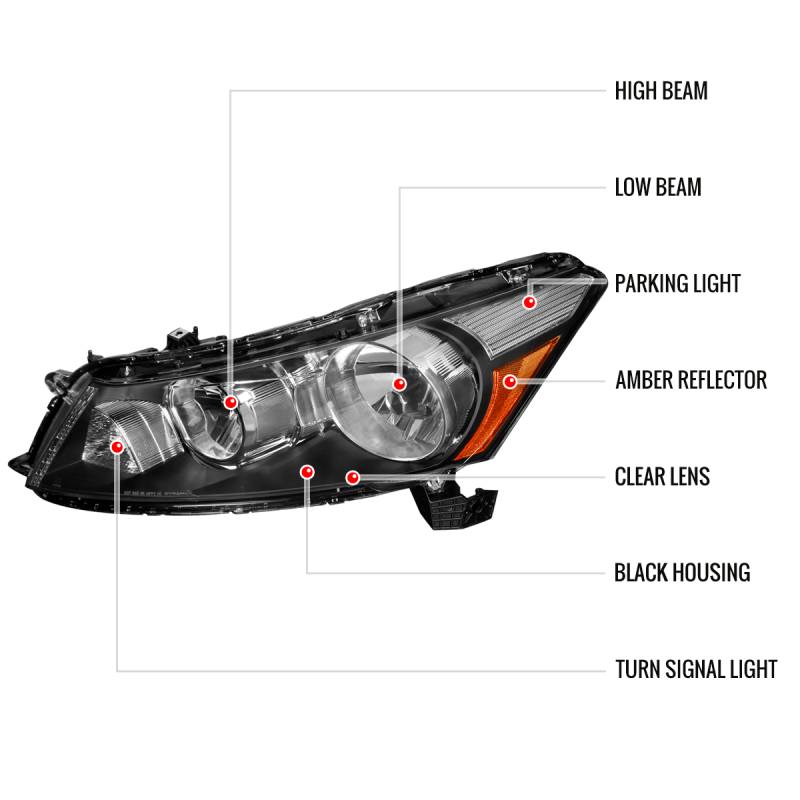 2008-2012 Honda Accord Sedan Factory Style Crystal Headlights w/ Amber Reflector (Matte Black Housing/Clear Lens)