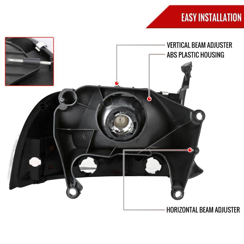 Spec-D 1997-2004 Dodge Dakota/ 1998-2003 Durango Crystal Headlights (Matte Black Housing/Clear Lens)