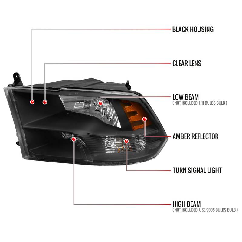 2009-2018 Dodge RAM 1500 models with factory Dual or Quad style halogen headlights