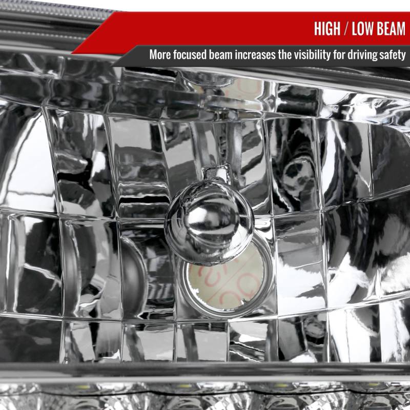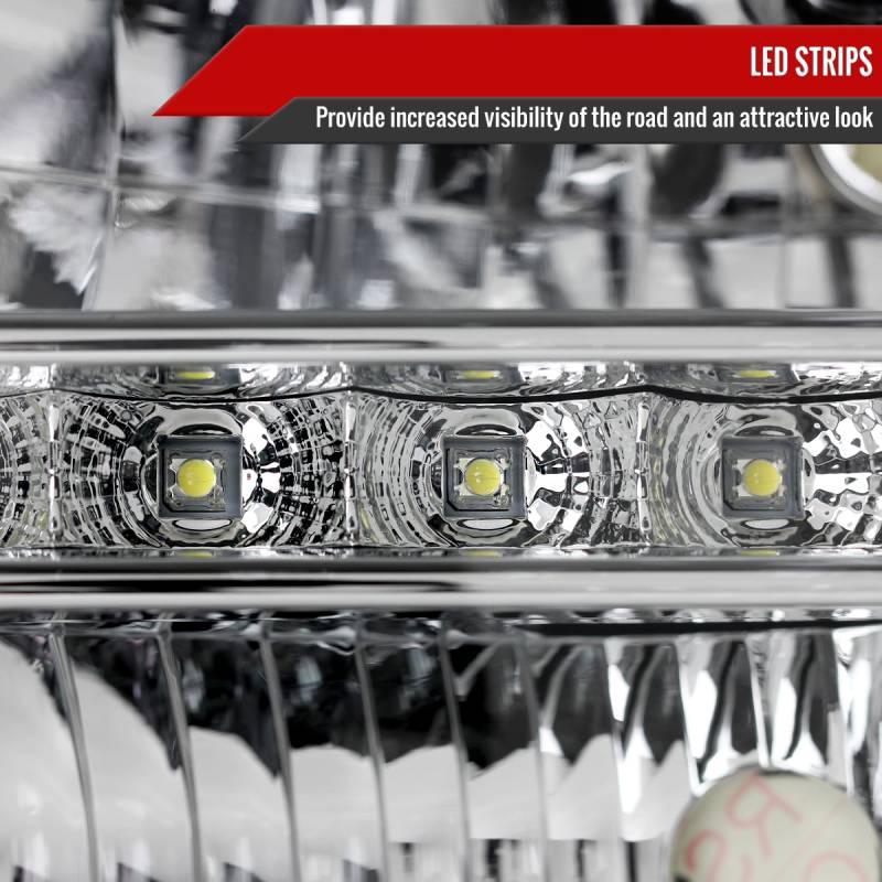 1999-2004 Ford F-250/F-350/F-450/F-550/Excursion Crystal Headlights w/ SMD LED Light Strip (Chrome Housing/Clear Lens)