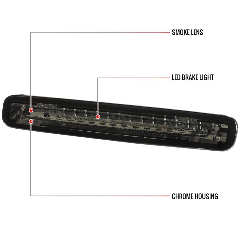 - Comes with 1 piece of chrome housing smoke lens LED 3rd brake light