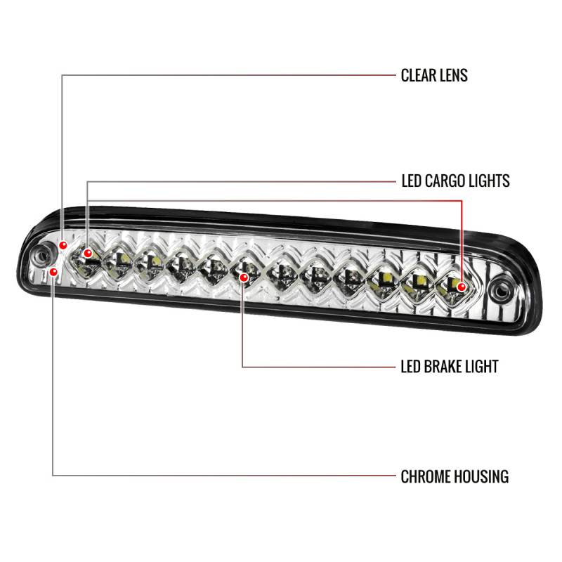 Spec-D 1993-2016 Ford F-250/F-350/F-450/F-550/Ranger Mazda B Series Pickup LED 3rd Brake Tail Light (Chrome Housing/Clear Lens)