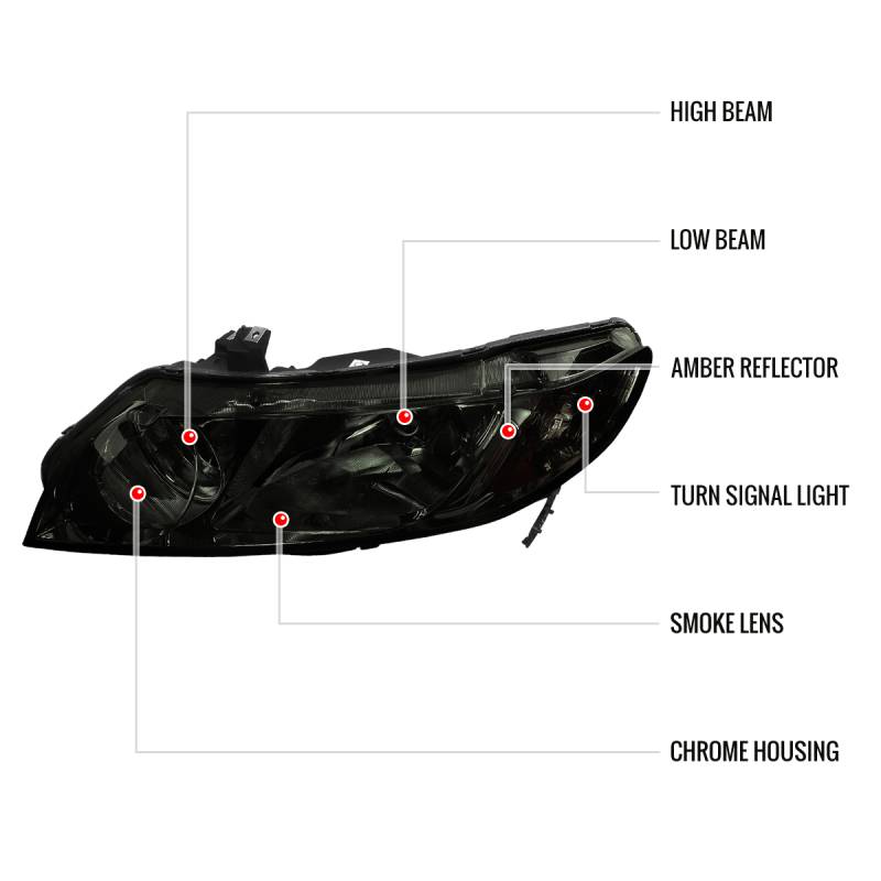 2006-2011 Honda Civic Sedan Crystal Headlights (Chrome Housing/Smoke Lens)