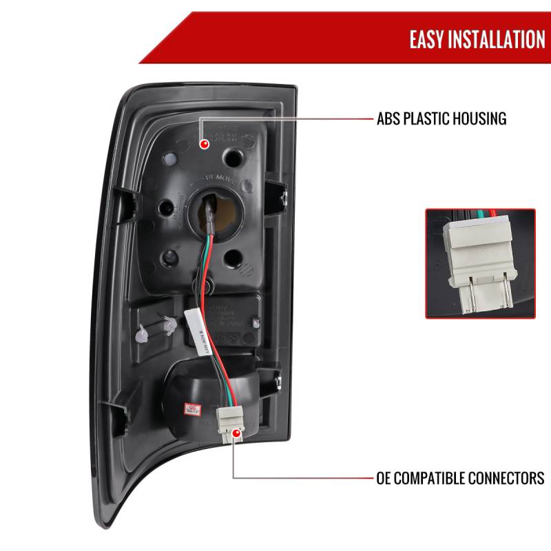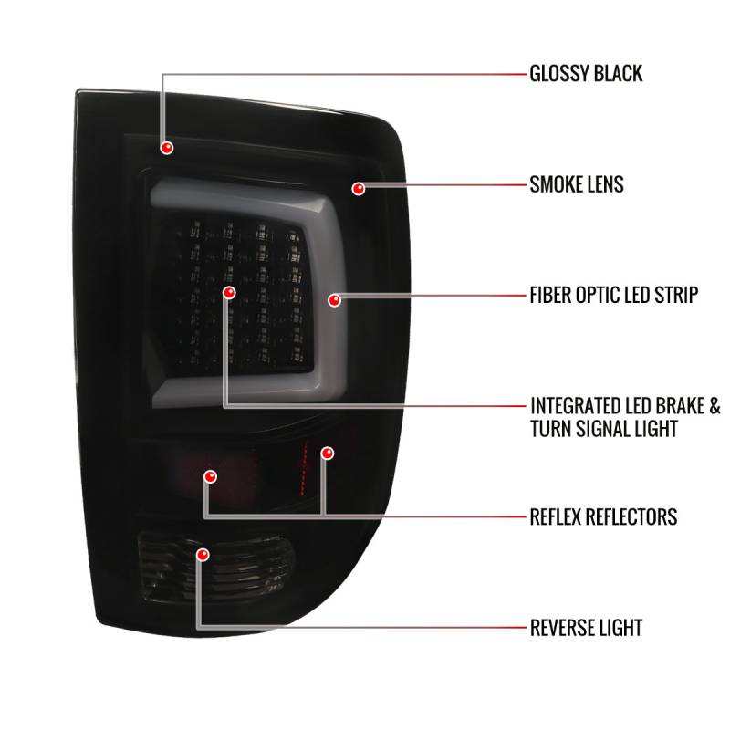 - (1) pair of glossy black housing, smoke lens LED tail lights