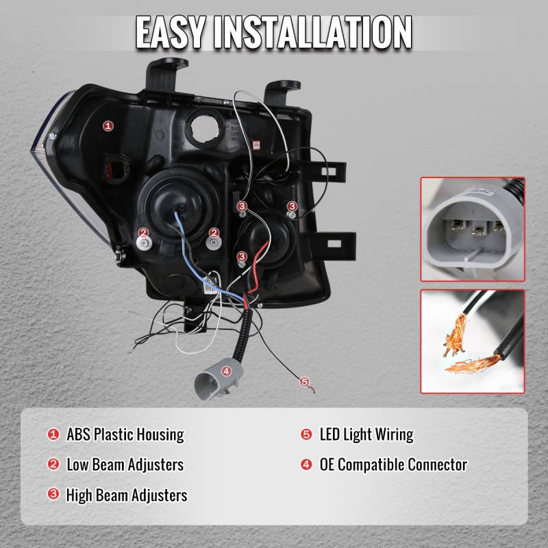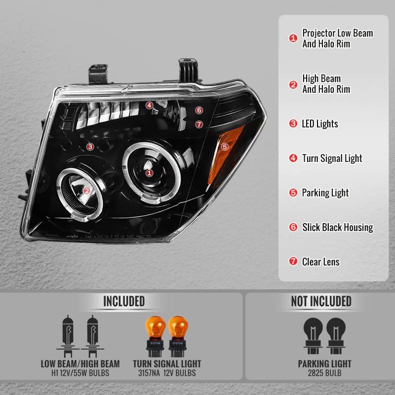 Spec-D 2005-2007 Nissan Pathfinder/ 2005-2008 Frontier Dual Halo Projector Headlights (Jet Black Housing/Clear Lens)
