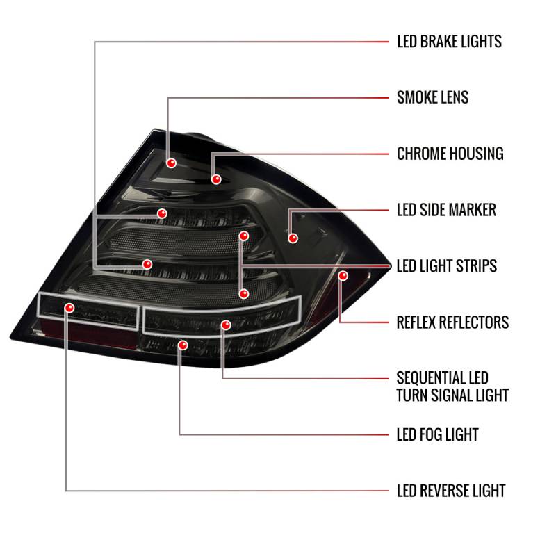 Spec-D 2001-2004 Mercedes Benz W203 C-Class Sequential Turn Signal LED Tail Lights (Chrome Housing/Smoke Lens)