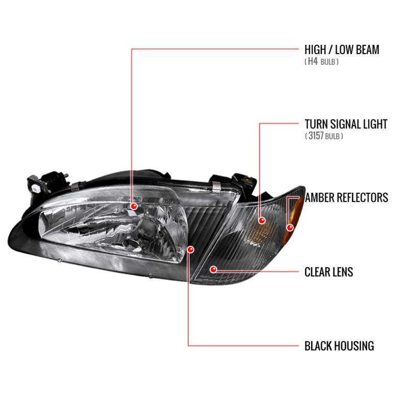 1998-2000 Toyota Corolla Factory Style Crystal Headlights w/ Corner Lights & Bulbs (Matte Black Housing/Clear Lens)