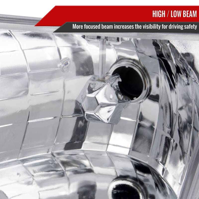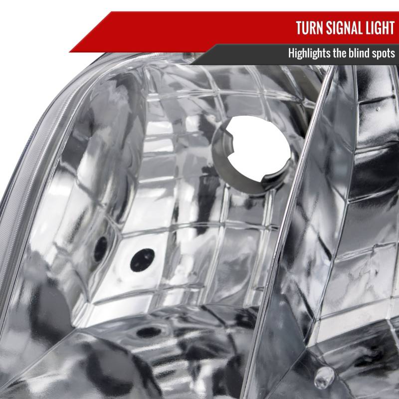 - Comes 1 pair of chrome housing clear lens headlights + 1 pair of clear lens corner signal lights with amber reflector