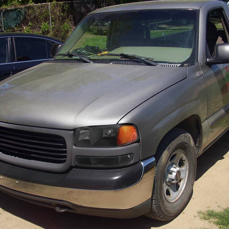 1999-2007 GMC Sierra/Yukon/Yukon XL Factory Style Crystal Headlights w/ Amber Reflector & Bumper Lights (Matte Black Housing/Clear Lens)