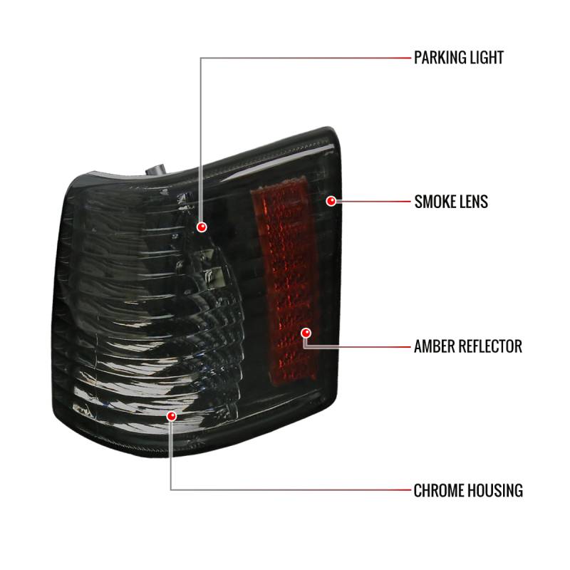 Comes with 1 pair of chrome housing smoke lens corner lights with amber reflector