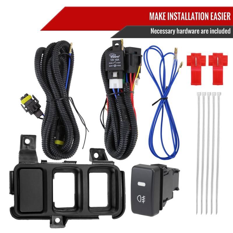 - Mounting brackets, on/off switch, relay, wiring harness, and all necessary hardware are included