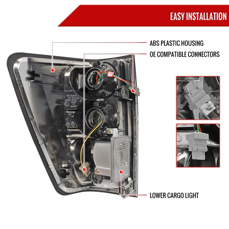 - Comes with 1 pair of black housing clear lens LED tail lights