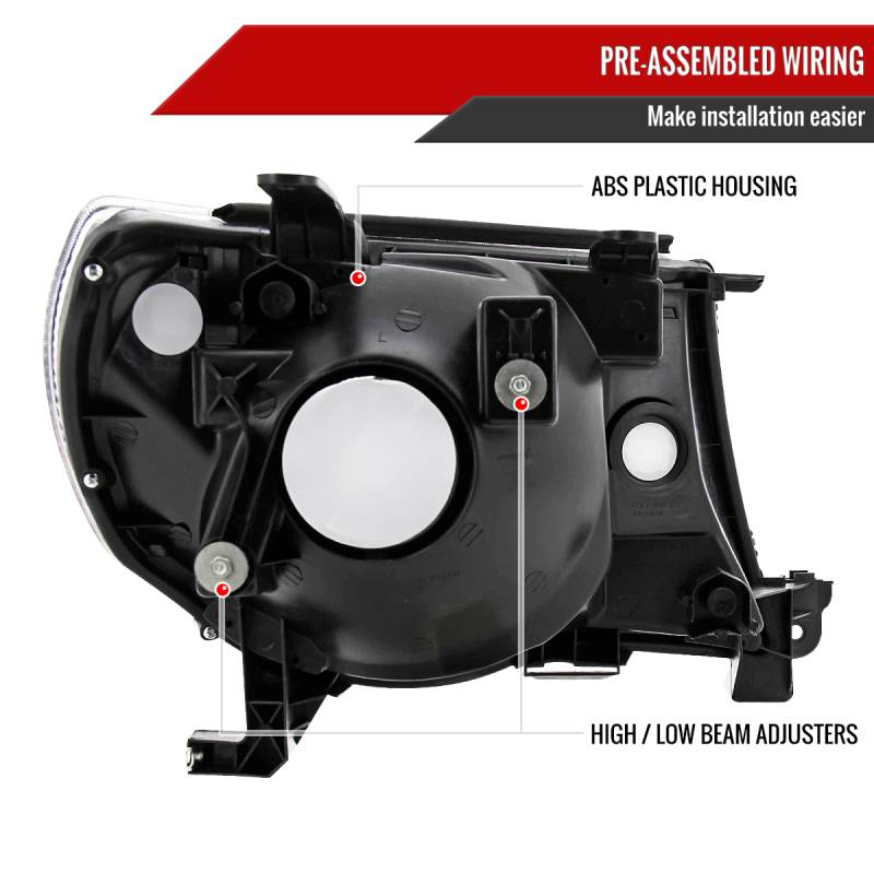 2005-2011 Toyota Tacoma Factory Style Headlights (Chrome Housing/Clear Lens)