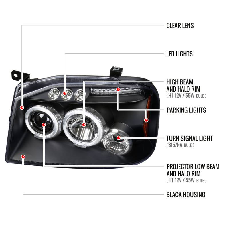 2001-2004 Nissan Frontier Dual Halo Projector Headlights (Matte Black Housing/Clear Lens)