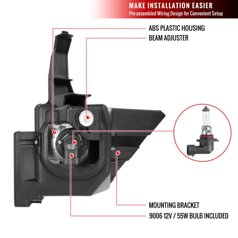 - 9006 12v/55w bulbs included