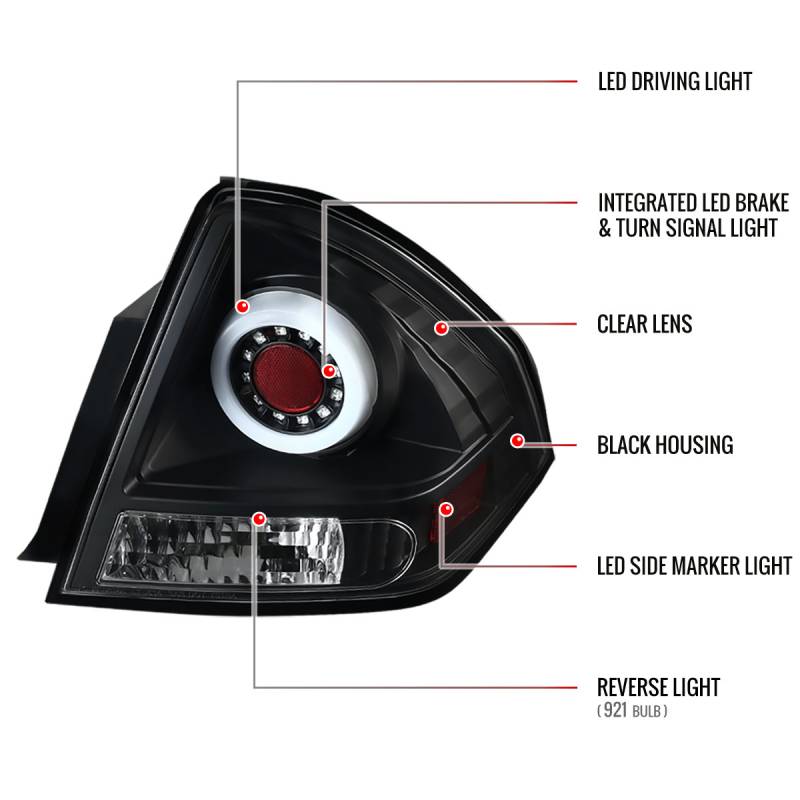 Spec-D 2006-2013 Chevrolet Impala/ 2014-2016 Impala Limited LED Tail Lights (Matte Black Housing/Clear Lens)