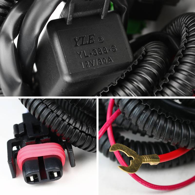 - Comes with H11 12v/55w bulbs, pre-assembled wiring harness, on/off switch, relay and mounting brackets