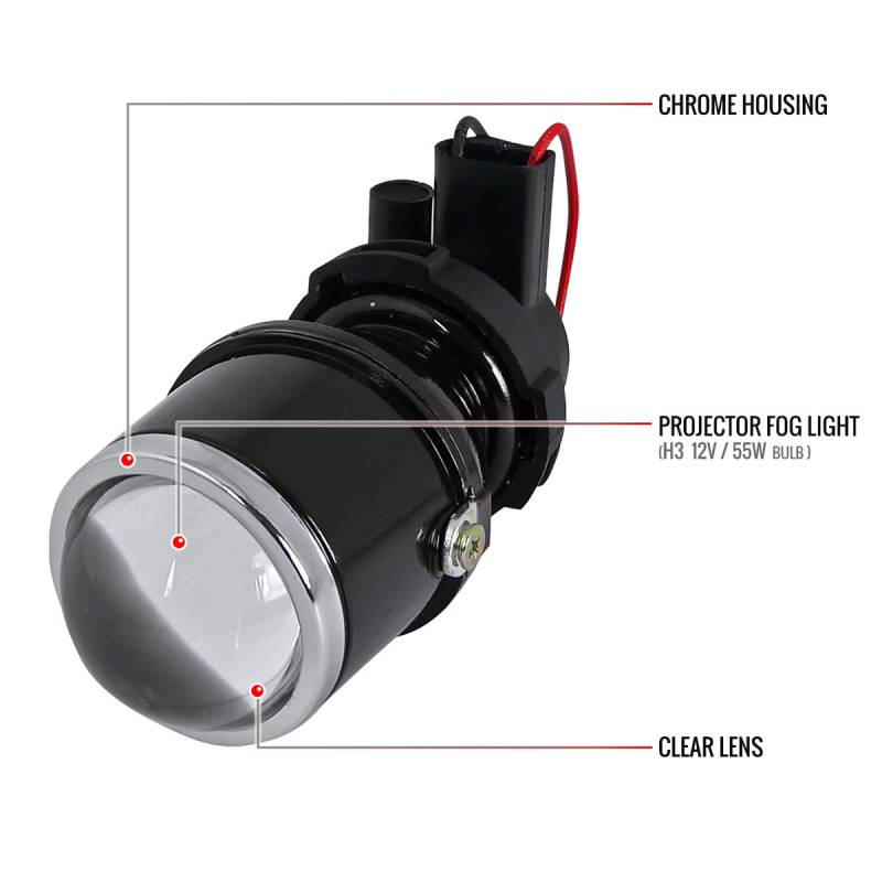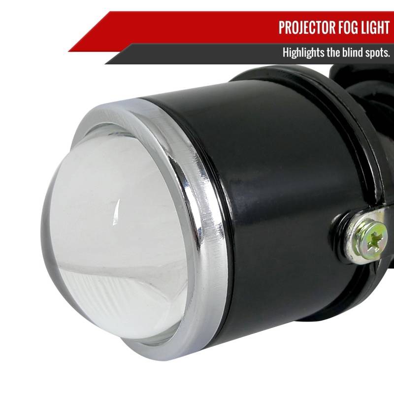 - 1 pair of black metal housing clear glass lens projector fog lights